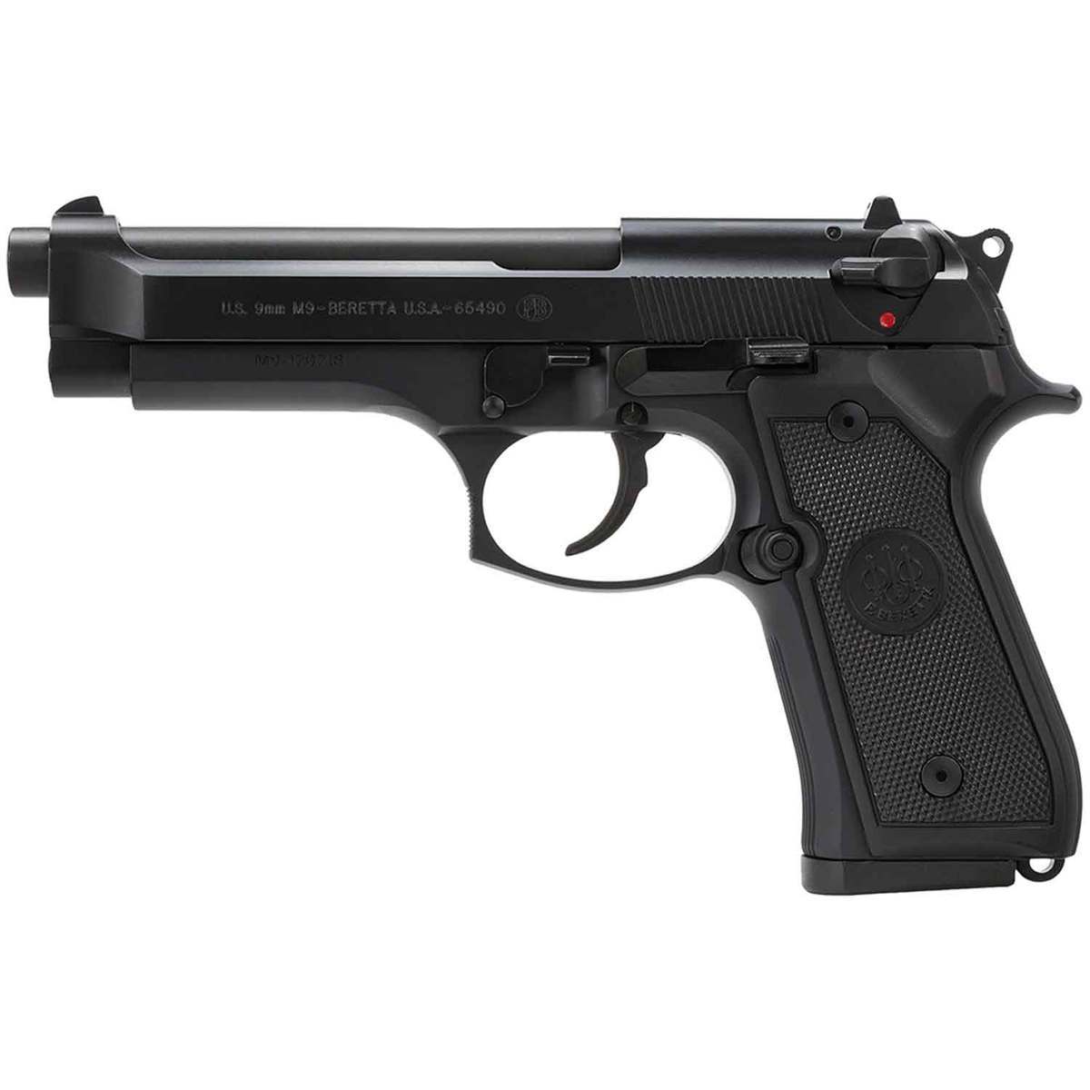 Beretta M9 9mm Luger 4.9in Black Bruniton Pistol – 15+1 Rounds – From the jungle heat of Panama to the sandstorms of Iraq, the men and women of the U.S. Armed Forces have counted on the Beretta M9 pistol for over two decades of distinguished service and reliability. The Commercial M9 pistol is the closest replica to the military M9 that a civilian may legally own. This M9’s distinctive military-style markings on various components closely resemble those of the M9 pistols used by the U.S. Armed Forces, and its 3-dot sight system clones that of the military M9. These two features as well as the unique M9-prefixed serial number set this Commercial M9 apart from the Beretta 92 FS pistol.