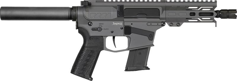 Designed for tactical versatility, the Banshee MK57 includes a Picatinny rail on the receiver, making it easy to attach optics and other tactical accessories. The pistol features EML 4″ M-LOK handguards and CMMG Zeroed grips, offering a comfortable and secure handling experience. Despite its robust build, the Banshee MK57 is lightweight at just 4.40 lbs, making it easy to maneuver in various tactical scenarios. The Tungsten Cerakote finish not only enhances durability but also adds a distinctive look that stands out.