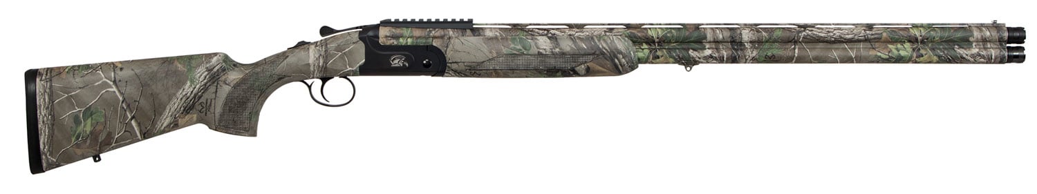 CZ’s Over and Under shotgun is a combination of Old World craftsmanship with modern technology. Its action is milled by CNC machines and hand-engraved to fit into the stock. The chrome-lined barrel ships with a set of five interchangeable chokes.The Reaper Magnum model is built to slay turkeys. This magnum shotgun allows a hunter to equip two vastly different chokes, allowing the choice of short range or long range constriction with the flip of the barrel selector switch. Its shorter barrel makes it more maneuverable, while the top Picatinny-style rail allows for adding an optic. The polymer stock features front and back QD swivels. The Reaper Magnum ships with an extra full choke tube. This model has a 26″ barrel, black receiver, and a Realtree APG camo finish.