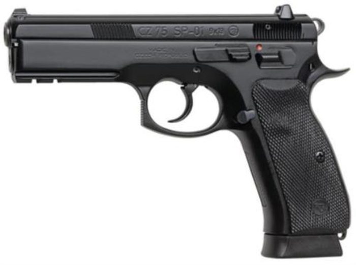 The CZ 75 SP-01 is the first full size handgun (4.72” bbl) from CZ to feature the improved manufacturing technology and ergonomics of the NATO approved CZ 75 Compact P-01 model. Featuring an integral 1913 accessory rail on the dust cover, rubber grip panels, and CZ’s corrosion resistant black polycoat fi nish, the SP-01 is the newest model to join the family of pistols based on the CZ 75 (SA/DA) platform.