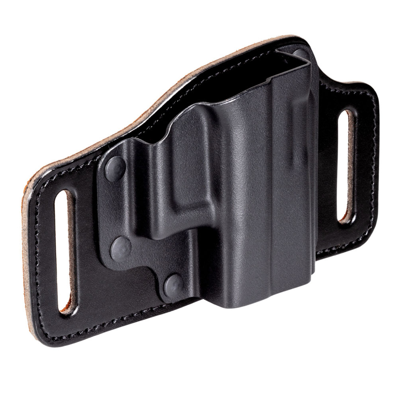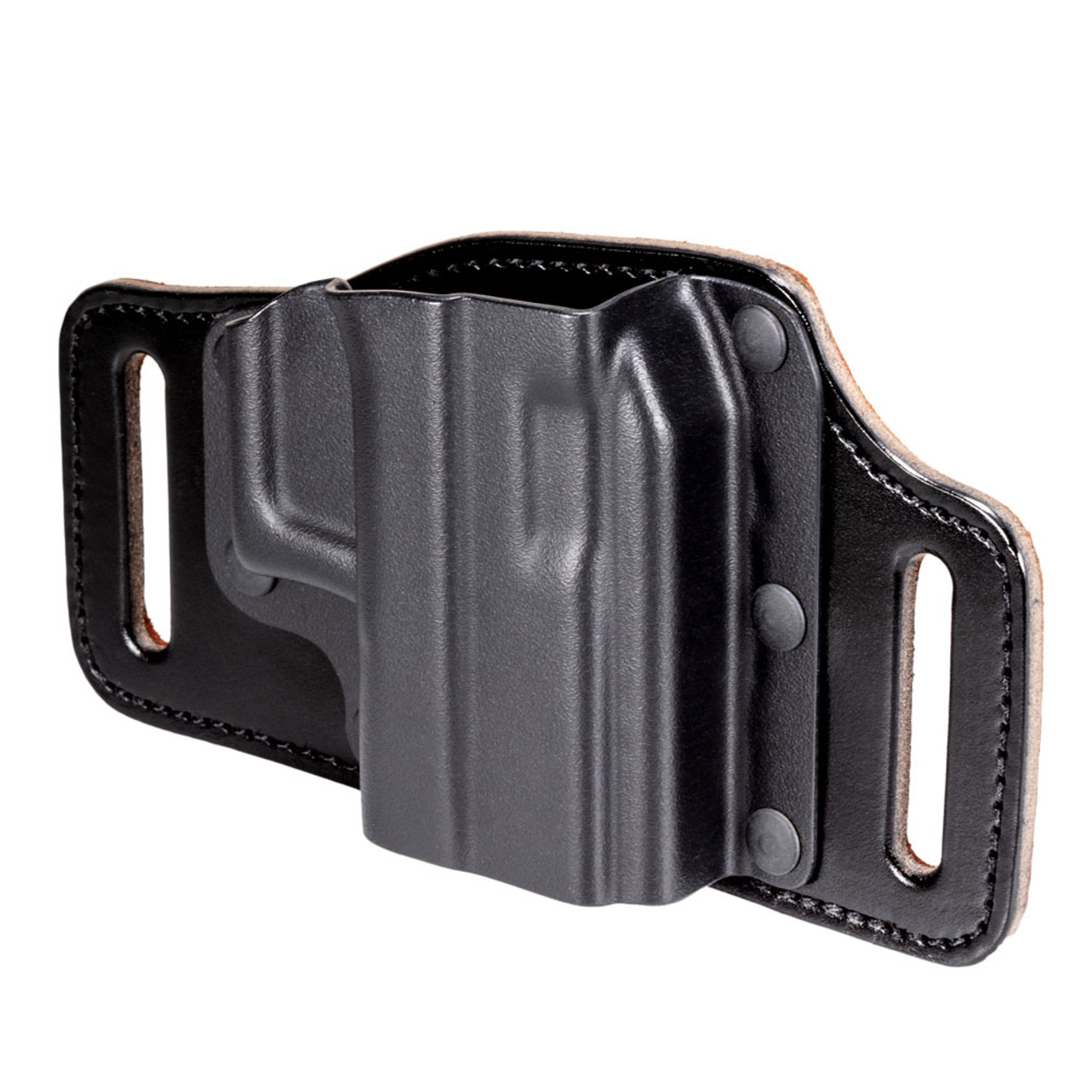 - Fore-and-aft belt slots pull the handgun into the body for concealment