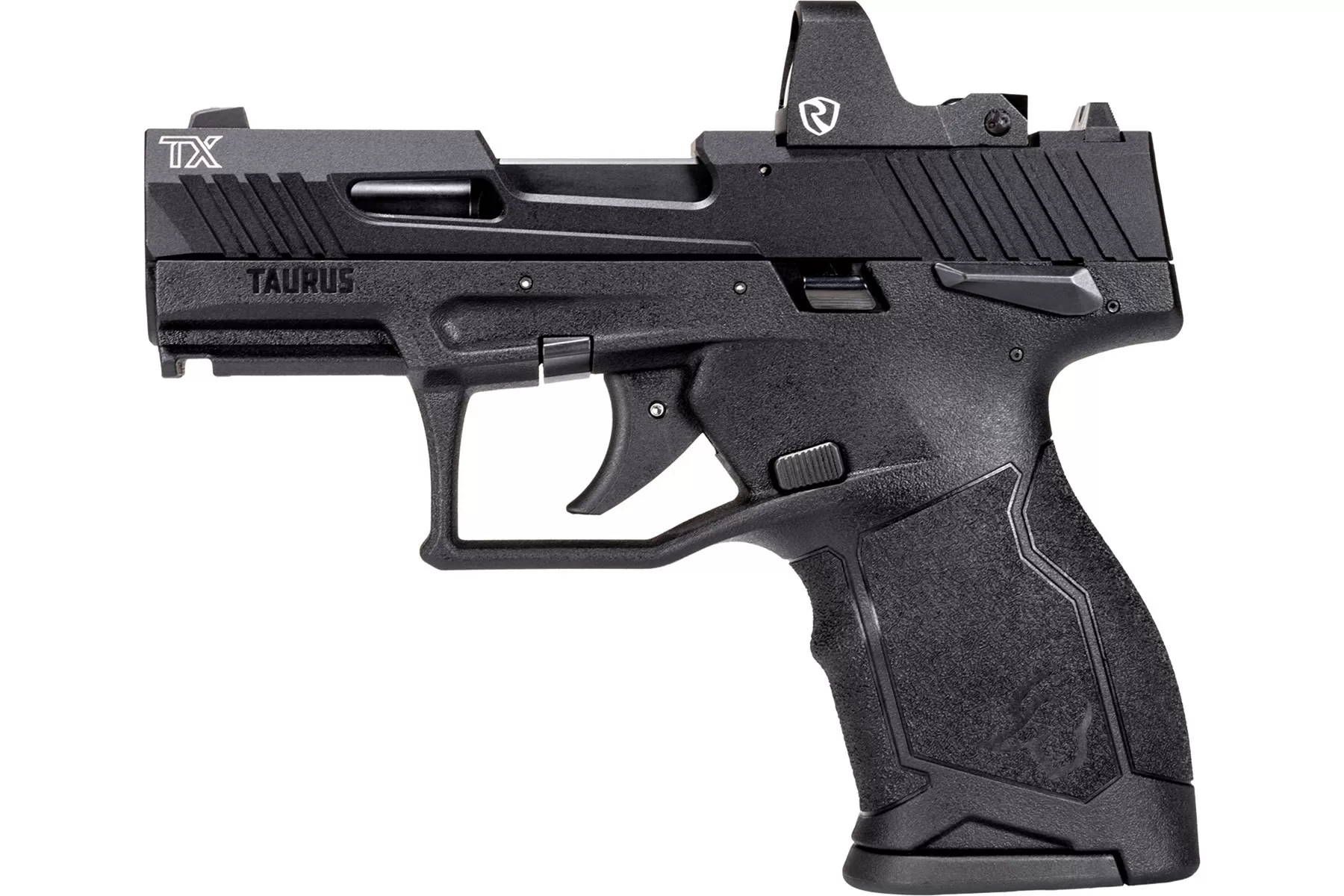 Its 13 round staggered column magazine pairs with the already excellent Taurus Performance Trigger System for fast, accurate shots. Accuracy is aided by the fact that all TaurusTX™ 22 Compact pistols are optics ready from the factory, with a footprint that matches the Shield RMSc and Holosun K optics.