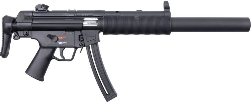 The MP5 submachine gun is easily the most famous of all HK gun designs. Now, get the authentic look, feel, and features of the legendary HK MP5 in a semi-automatic .22 LR rifle. HK has collaborated with Umarex of Germany to bring you the only HK-authorized rimfire versions of the iconic MP5.
