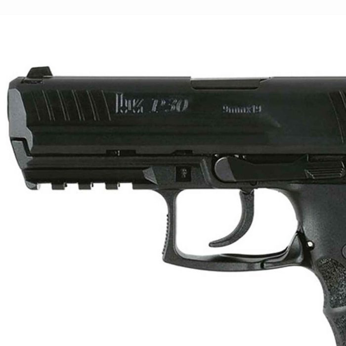 H&K P30S 9mm Luger 3.85in Black Pistol – 17+1 Rounds – The P30 is a modern police and security pistol that combines function and safety. Ergonomic features include a special grip frame with interchangeable backstrap inserts and lateral plates, allowing the pistol to be individually adapted to any user. Ambidextrous controls include dual slide releases and magazine release levers. This model features a double-action/single action trigger and a serrated decocking button located on the rear of the frame. A Picatinny rail molded into the front of the frame makes mounting lights, laser aimers, or other accessories easy and convenient. The extractor doubles as a loaded chamber indicator providing a subtle tactile and visual reminder of a loaded chamber.