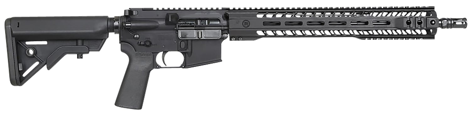 The Radical Firearms 16″ Socom 5.56mm AR rifle uses MIL-STD Upper and lower receivers along with our 15″ MHR free-float rail system for increased accuracy, keeping your hands cool, and giving you plenty of room for accessories. It utilizes a 4140 chrome moly vandium barrel with a A2 flash hider and a B5 Systems Bravo series adjustable stock.