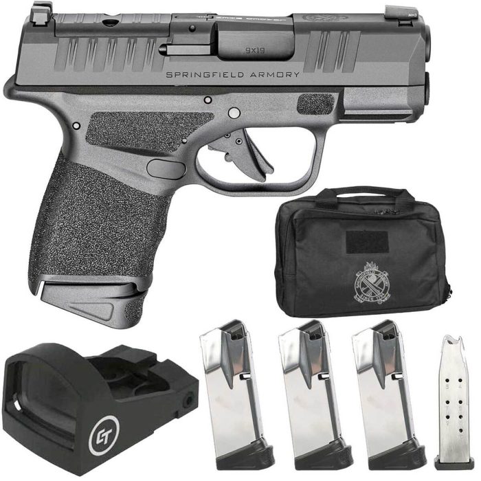 The Springfield Hellcat OSP comes with five 10-round magazines, providing ample capacity for various shooting scenarios. The included range bag offers convenient storage and transport.