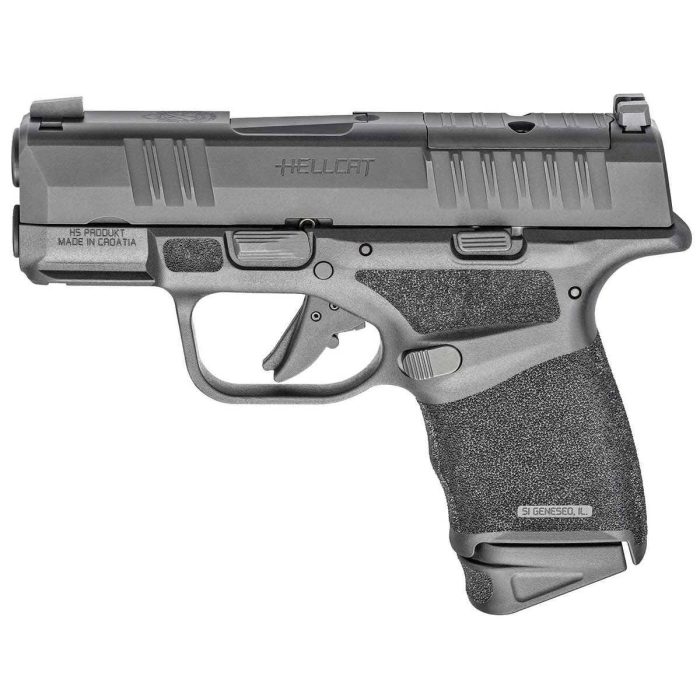 Springfield Armory Hellcat OSP Optics Ready 9mm Luger 3in Black Pistol – 10+1 Rounds – The Springfield Armory Hellcat raises the bar on concealed carry pistols with service pistol comfort, capacity and accuracy in a remarkably compact chassis. Offering up to an amazing 13+1 rounds on tap, the Hellcat Micro-Compact OSP (Optical Sight Pistol) has its billet-machined rear slide deck cut to accept a micro red dot sight. Premium features like a 3in hammer-forged Melonite-coated 1:10in-twist barrel and svelte 1in grip width define the Hellcat line.