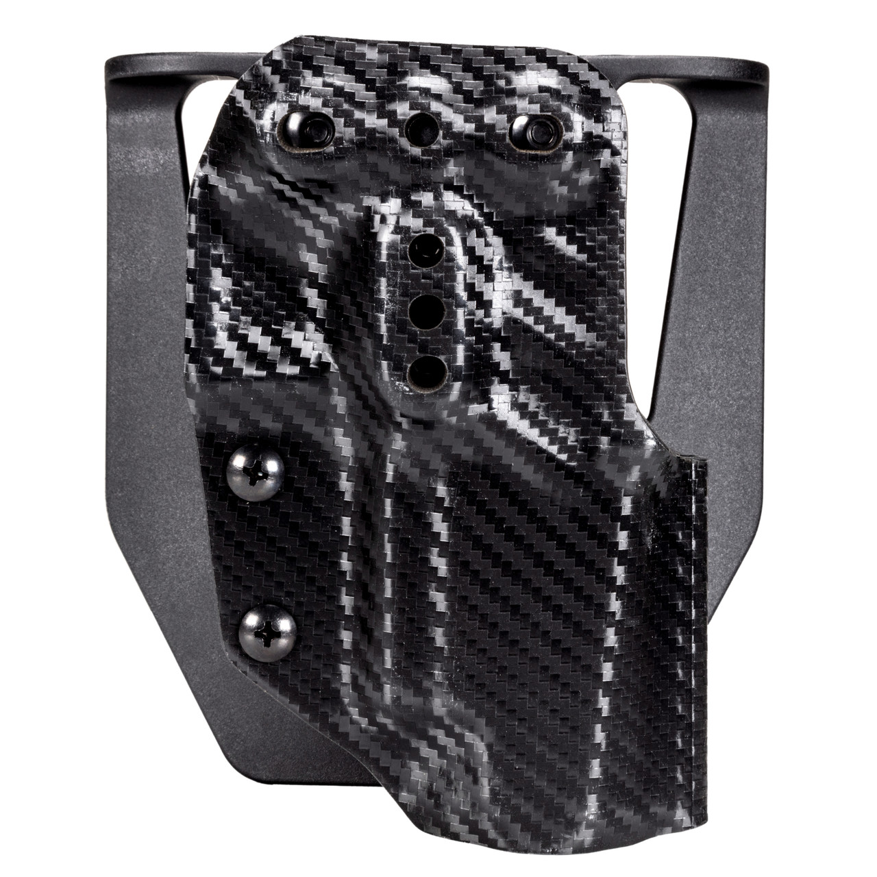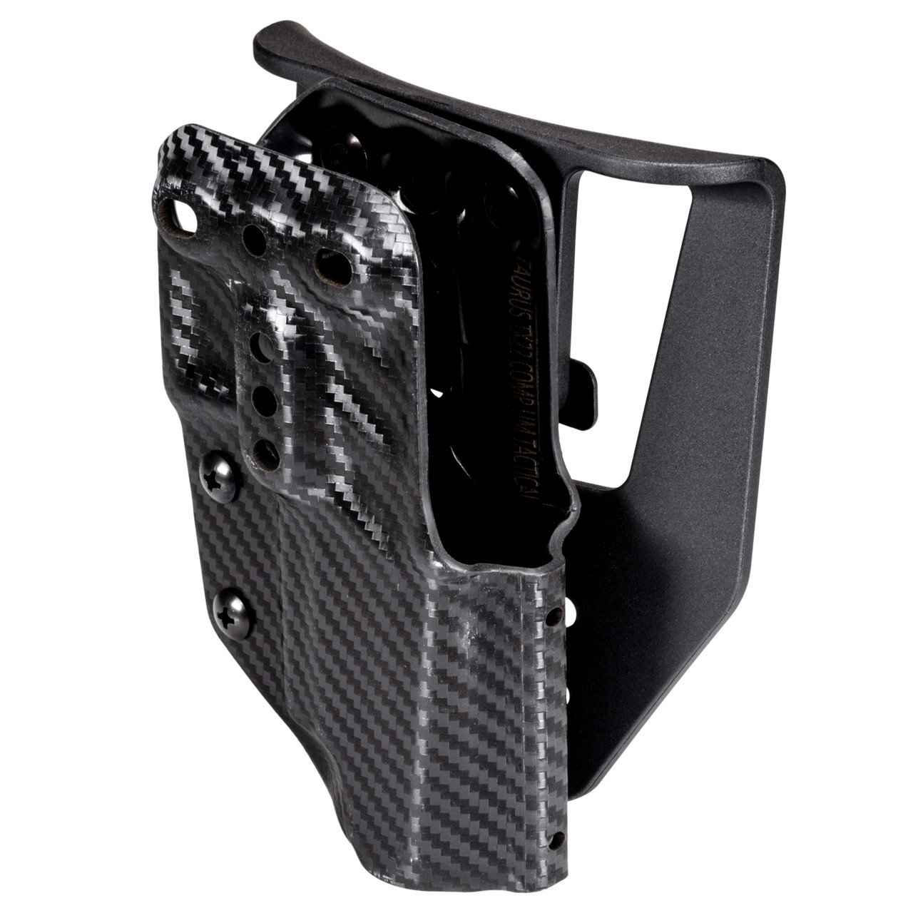Holster could easily be adapted for specific needs with other holster attacehments as Safariland. Outside the Waist Band (OWB) paddle for your range needs. Ambi for left or right hand.